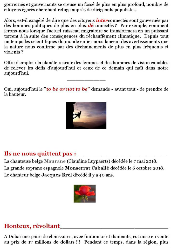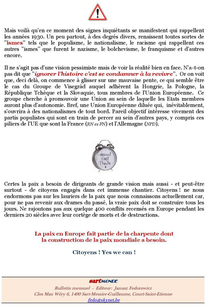 L’actualité de ces jours ne peut pas nous laisser indifférents. La pauvreté, le climat et la migration des population vont s’imposer à l’agenda de nos gouvernants. Les citoyens ont à ce jour le mérité de porter leur voix sur la place publique.